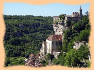 「アルズー川の峡谷斜面に岩板が変化したかのような教会や家並みが立ち並ぶ巡礼地