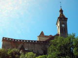 村の頂上の城壁と鐘楼の時計台 |