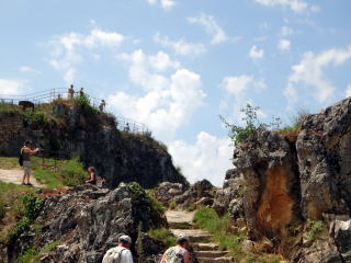 混まない内に朝一番でルフィニャック洞窟へ、ただこの日は朝一番小学校の団体予約が朝から入っていたため、子どもたちと賑やかな列車のツアーになりました。ツアーガイドさんが洞窟内を案内。所々列車を降りて見学のポイントを解説。(最後尾にガイドが乗車するため、最後尾にいたため、英語で個別に解説をしていただいた。偶然にもラッキー)洞窟内はこの時期でもジャンパー程度の上着があった方が良い。子どもたちも持参していました。
